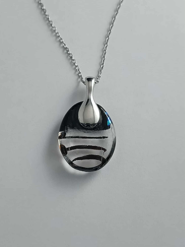 Un bijou au design moderne, alliant la transparence du verre et la magie des reflets métallisés du verre dichroïque.